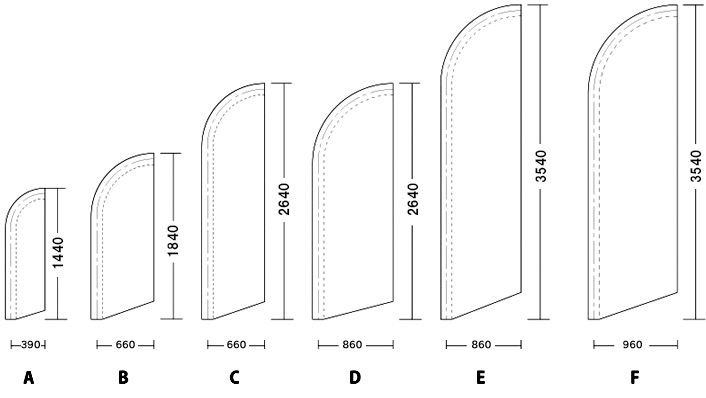 新しいタイプののぼり旗です。スウィングバナーは上方がしなやかな曲線を描き、お洒落で目立つデザインで、屋外の販売促進やPRにうってつけです。最大全長5mまでのバリエーションを用意しています。 従来ののぼり旗よりインパクトがあって、効果抜群です。