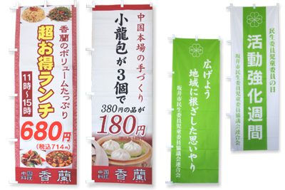 また、関連品として暖簾やタペストリー等の販促品制作も各種承っております。まずはお気軽にご相談ください。